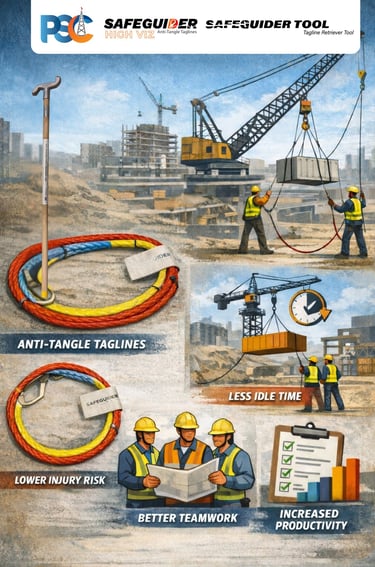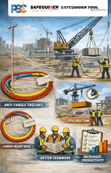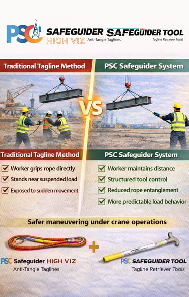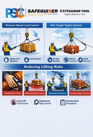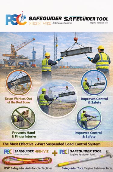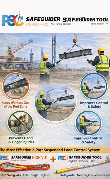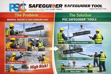 PSC Safeguider® tools eliminate direct hand contact with suspended loads, significantly reducing pinch-point injuries, uncontrolled taglines, and manual load handling risks. The Problem: Manual Tagline & Load Handling Risks